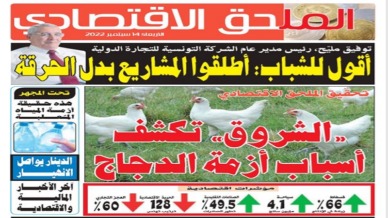 كل أربعاء تشرع جريدة الشروق في نشر ملحق اقتصادي يتميز بأخبار حينية وجديدة تهم عالم الاقتصاد والمال في تونس كما يتطرق بكل التفاص