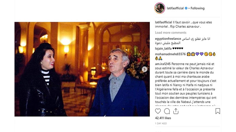نعت الفنانتان لطيفة العرفاوي وهند صبري نجم الاغنية الفرنسية الراحل شارل ازنافور .