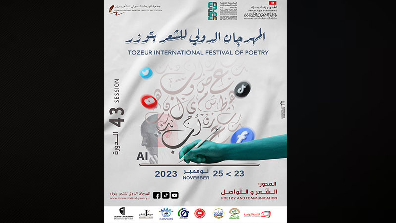 تنطلق بداية من اليوم إلى غاية السبت 25 نوفمبر ،فعاليات المهرجان الدولي للشعر بتوزر في دورته 43 تحت عنوان «الشعر والتواصل»، بد