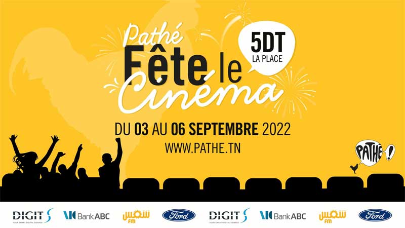 تنتظم من 3 إلى 6 سبتمبر الجاري تظاهرة "السينما تحتفل" وذلك بقاعات Pathé بالمراكز التجارية "Azur City" و "Tunis City" و "Mall of