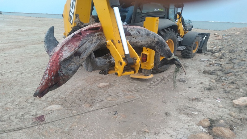 لفظ البحر يوم أمس الأحد على مستوى شاطئ سيدي منصور كم 13، حوتا كبيرا طوله حوالي 3 امتار من نوع دلفين.