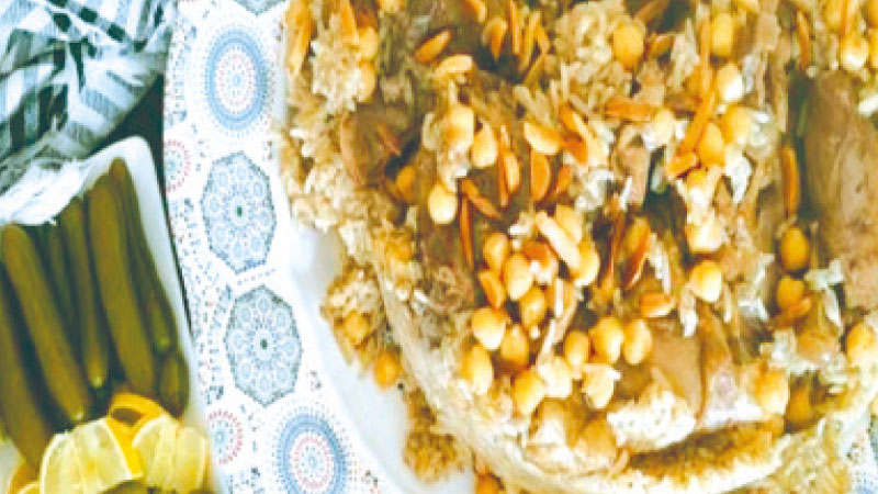 لحم مقطع مكعبات. 5 أكواب ماء مغلي. 2 أكواب أرز. 200 غرام حم.
