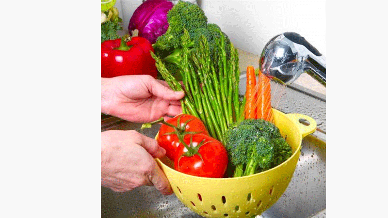 1 - استخدمي فرشاة الخضار لمساعدتكِ في تنظيف الثمرات ذات الجلد السميك، كالبطاطا الحلوة والبطاطا والخيار.