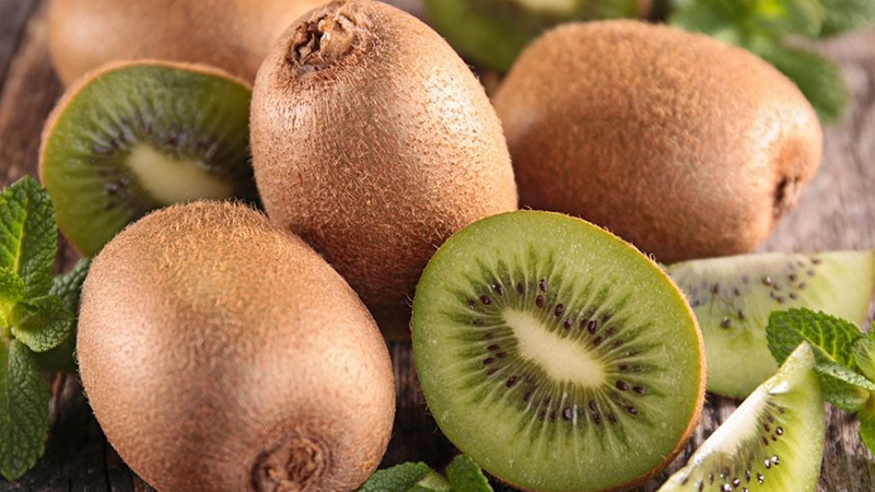 يحتوي الكيوي على عناصر تفيد البشرة مثل فيتامين C، وفيتامين E، لذلك فإنّ استخدامه يمتّع البشرة بحيوية ونضارة.