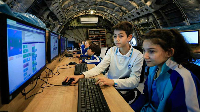 قامت إحدى المدارس التركية في ولاية إزمير بتحويل طائرة مدنية قديمة إلى صف مدرسي لطلابها المتميزين الذين يحلمون بقيادة طائرة حقيق