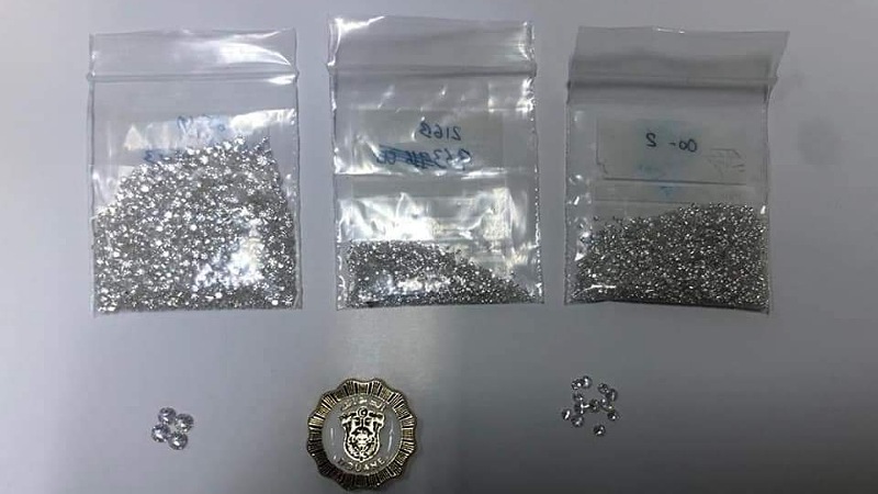 وبسؤال المسافر المذكور إن كان لديه ما يصرح به لدى الديوانة أفاد بأنه لديه كمية من الأحجار المزيفة وبمعاينتها اشتبه أعوان الديوانة في قيمة هذه الأحجار فتم عرضها على الإختبار الذي أكد وجود أحجار كريمة من نوع الألماس مخفية وسط كمية الأحجار المزيفة. تم تحرير محضر حجز في الغرض وقد بلغت القيمة الجملية للمحجوز 100 ألف دينار.