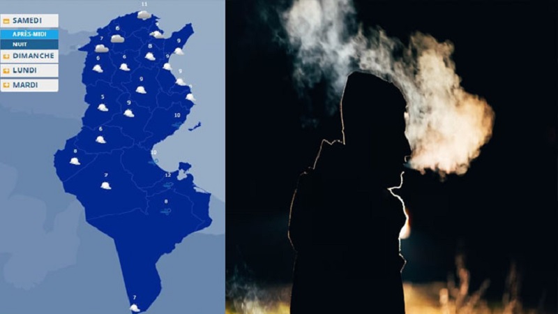 يتواصل الطقس هذه الليلة على نفس وتيرة الفترات السابقة، حيث يكون قليل السحب بأغلب الجهات مع تسجيل انخفاض حاد في درجات الحرارة، لتتراوح القصوى بين 7 و11 درجة، ولا تتجاوز 5 درجات بالمرتفعات الغربية، وفق توقعات المعهد الوطني للرصد الجوي. ومن المنتظر هبوب رياح من القطاع الغربي سرعتها قوية قرب السواحل وبالجنوب ومعتدلة داخل البلاد.