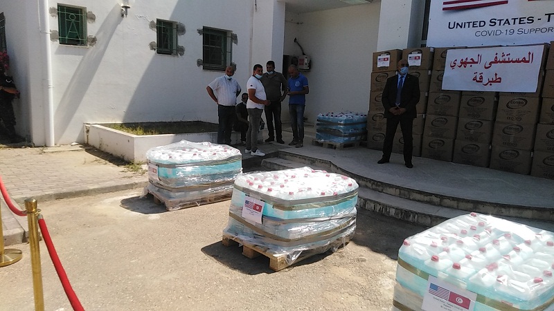 سلم السفير الامريكي بتونس معدات طبية و شبه طبية لفائدة المستشفى الجهوي بطبرقة من ولاية جندوبة كهبة من وزارة الدفاع الامريكية ل