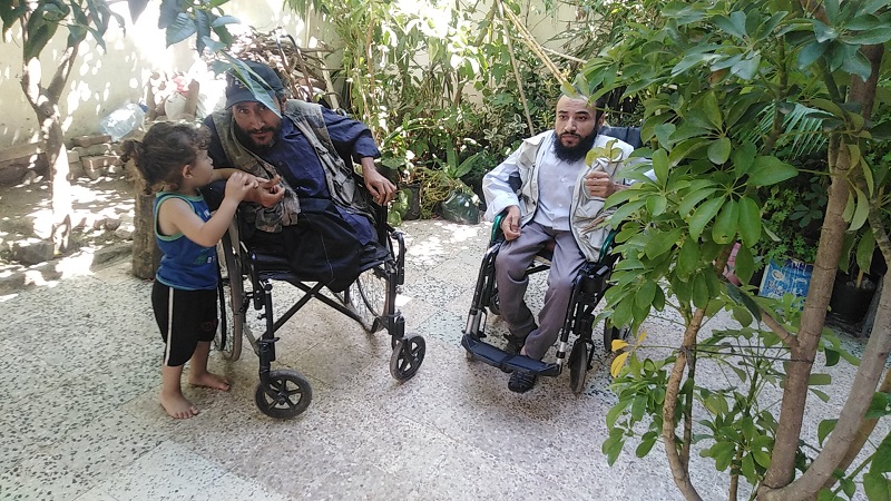 بحي الزهور بمدينة غار الدماء تسلمت عائلة الوشتاتي التي بها اربعة افراد مقعدين ( رجلان و فتاتان ) 3 كراسي متحركة هبة من رجل اعما
