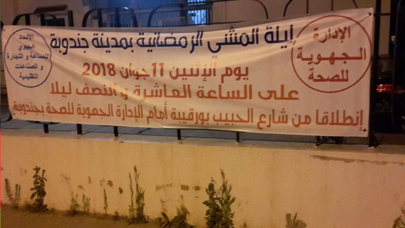 بتنظيم من الاتحاد الجهوي للصناعة والتجارة بجندوبة انتظم هذه الليلة الاثنين 11 جوان 2018 ليلة المشي للجميع و الذي شارك فيه أكثر