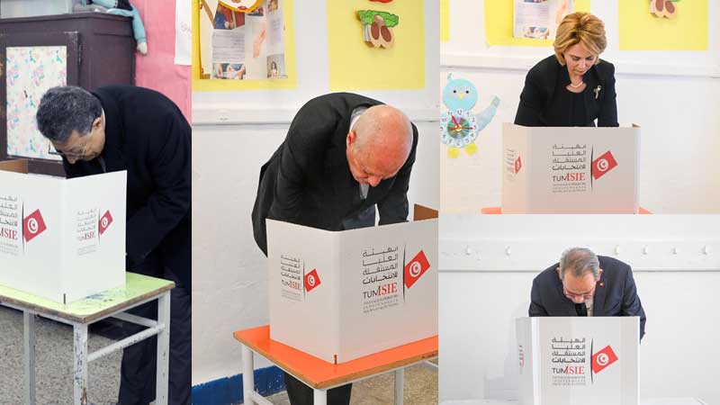 شارك امس الأحد رئيس الجمهورية وحرمه، ورئيس الحكومة ورئيس مجلس نواب الشعب في الاقتراع المخصص لانتخاب أعضاء المجالس المحلية.