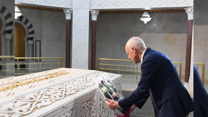 تحول رئيس الجمهورية قيس سعيد صباح اليوم السبت إلى مدينة المنستير حيث أدى زيارة إلى ضريح الرئيس الراحل الحبيب بورقيبة.