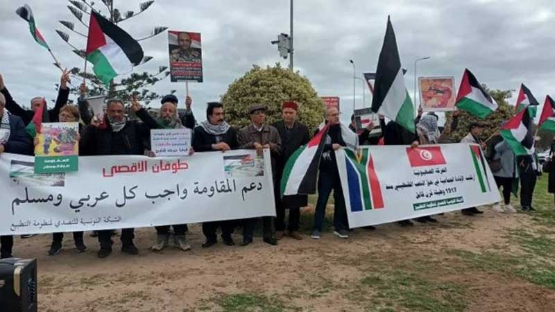 دعا المشاركون في الوقفة الاحتجاجية التي نظمتها الشبكة التونسية للتصدي لمنظومة التطبيع، أمس الأحد، أمام مقر السفارة الأمريكية بت