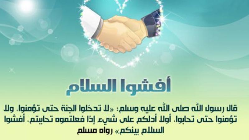 قال صلى الله عليه وسلم ( لا تدخلوا الجنة حتى تؤمنوا ولا تؤمنوا حتى تحابوا، أولا أدلكم على شيء اذا فعلتموه تحاببتم؟