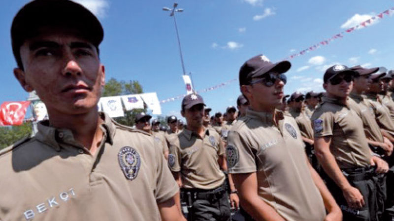 بقميص بني فاتح اللون وبنطال داكن يتجول "حراس الليل"، أو مَن يعرفون بحراس الأحياء في تركيا.