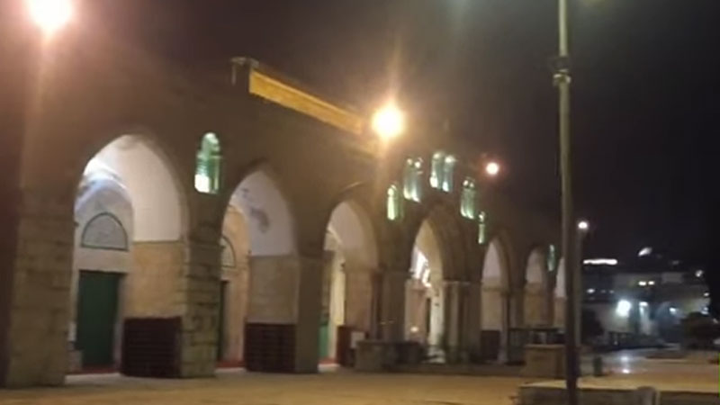 نشر نشطاء على مواقع التواصل الاجتماعي شريط فيديو، يظهر المسجد الأقصى ليلا فيما يسمع من مئذنته ترتيل آيات من القرآن الكريم.