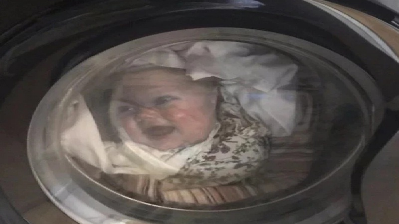 هل يمكنك تخيل الرعب الذي شعر به هذا الأب عندما رأى وجه طفله وهو ينظر إليه من داخل غسالة الملابس؟