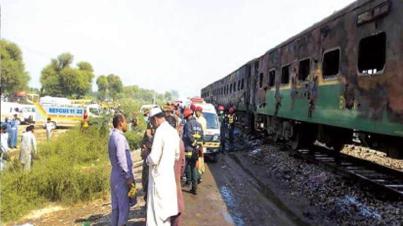 قتل 74 شخصا على الأقل من بينهم العديد من الركاب المتجهين إلى تجمع ديني في حريق اندلع اول امس على متن قطار ركاب في باكستان بعد ا