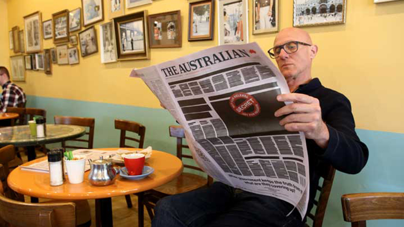 أصدرت الصحف الأسترالية الرئيسية امس الإثنين صفحاتها الأولى باللون الأسود، في إطار حملة موحدة تطالب الحكومة المحافظة بحماية حرية
