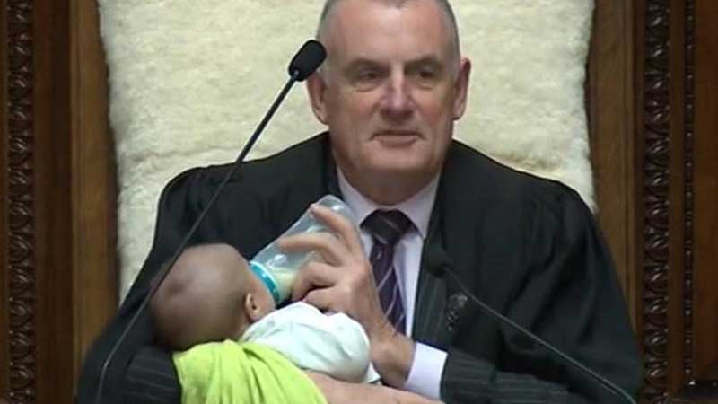 انتشرت صور ومقاطع فيديو لرئيس البرلمان النيوزيلندي "تريفور مالارد" وهو يرضع طفلاً داخل البرلمان اثناء إدارته لجلسة نقاش برلماني