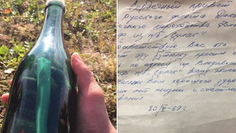 عثر أمريكي على رسالة كتبها بحار روسي عمرها 50 عاما وتركها داخل زجاجة.