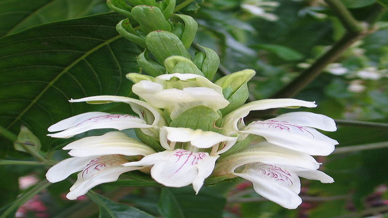 اشجار دائمة الخضرة تسمة لارتفاع متر ولها اوراق متقابلة غير مؤذنة بسيطة رمحية وازهارها في نورات غير محدودة سنبليه وهي بيضاء اللو