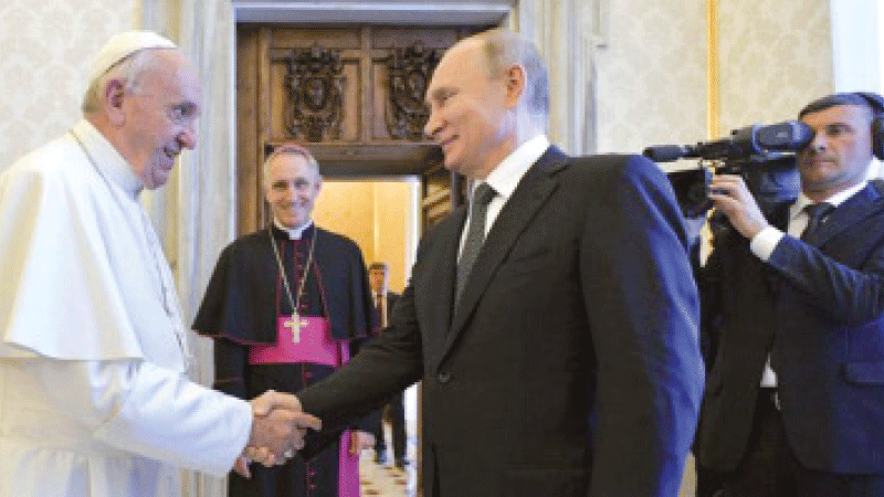قدّم الرئيس الروسي، فلاديمير بوتين، للبابا فرنسيس هدية غير تقليدية أثناء مراسم زيارته له اول امس.