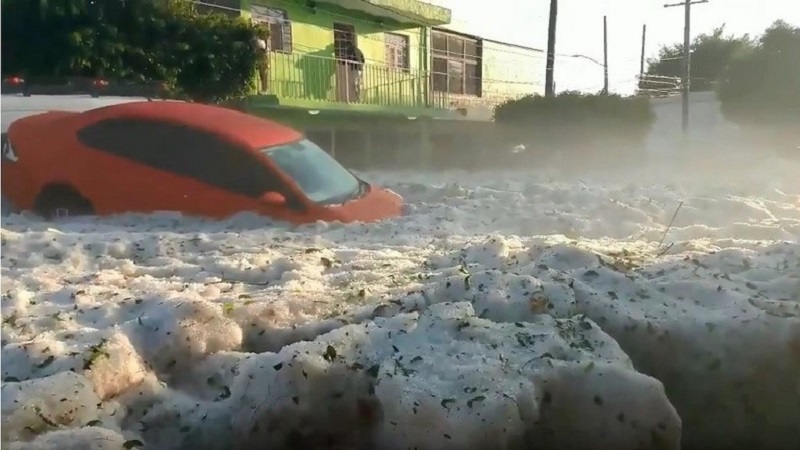 وقعت كارثة طبيعية غير عادية في مدينة غوادالاخارا عاصمة ولاية خاليسكة المكسيكية أدت لطمر العديد من أحيائها تحت طبقة عميقة من الج