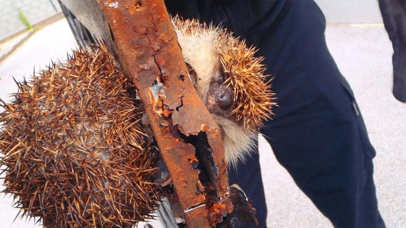 تدخل رجال الدفاع المدني لإنقاذ قنفد علق في بوابة حديدية، في عملية أثارت الإعجاب بمدينة غراتز جنوب شرقي النمسا.