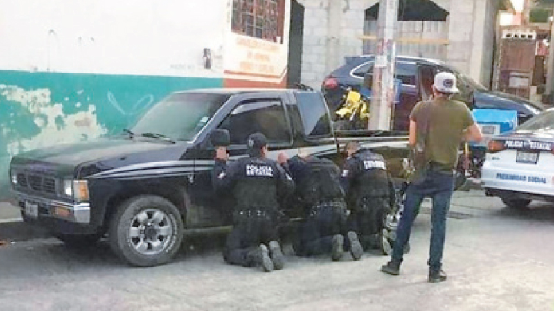 في مشهد غريب من نوعه، ومعاكس للأدوار المنطقية في الشارع، ألقى أفراد عصابة في المكسيك القبض على عناصر من الشرطة وأجبروهم على الر