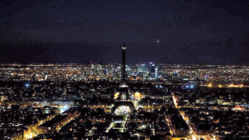 خيّم الظلام على برج إيفل في وقت متأخر من أول أمس بعدما أطفأت باريس أنوار أشهر معالمها السياحية احتفالا بساعة الأرض هذا العام.
