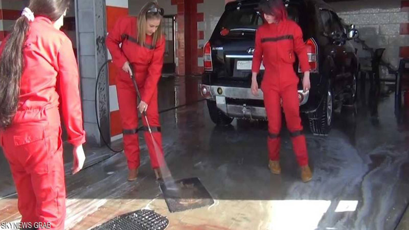 أظهر مقطع فيديو نشرته وكالة "رابتلي"، مغسل سيارات افتتح مؤخرا في السويداء جنوب سوريا، زبائنه وطاقم العمل فيه من النساء.