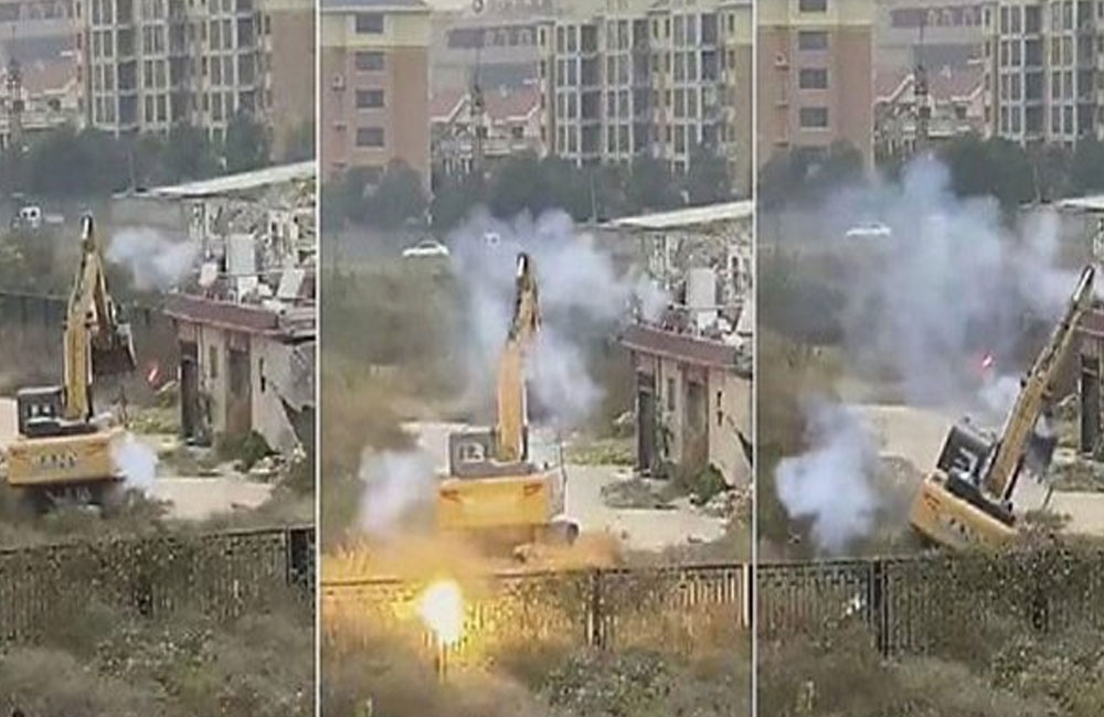 تداول رواد وسائل التواصل الاجتماعي فيديو لرجل تغلب على حفارة ضخمة، أرادت هدم منزله، وأسقطها أرضا بواسطة ألعاب نارية.