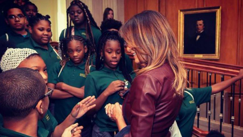 انتشرت صورة لسيدة الولايات المتحدة الأولى، ميلانيا ترومب، أثناء استقبالها وزيرة التعليم بيتسي ديفوس وبعض التلاميذ من أصول إفريق