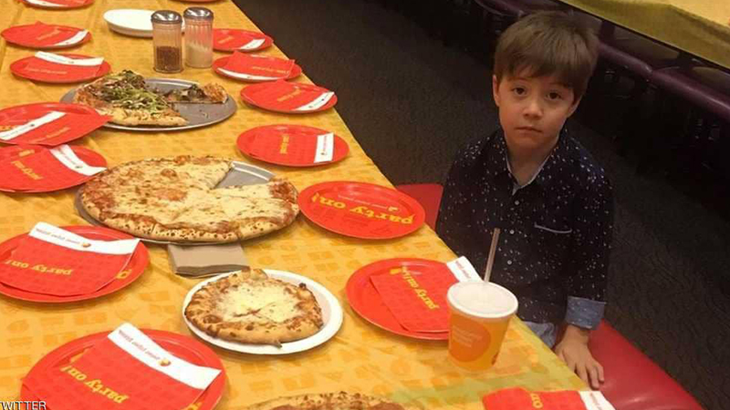 أثارت صورة طفل عابس، وفطيرة بيتزا ومقاعد فارغة، على وسائل التواصل الاجتماعي، تعاطف العامة وبعض المشاهير.