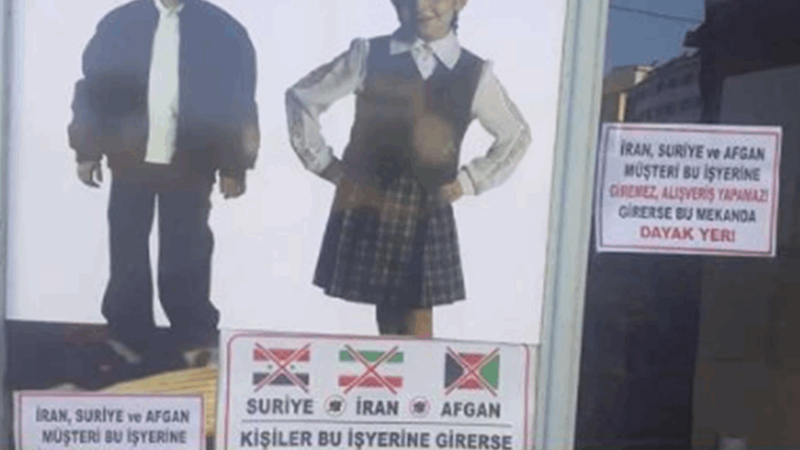 علّق صاحب أحد المتاجر في مدينة تشينار، في مقاطعة دنيزلي التركية لافتة على واجهة محله موجهة ضد الزوار من إيران وسوريا وأفغانستان