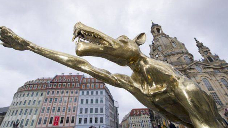 صمم الفنان الالماني” راينر أوبولكا” مجموعة تماثيل لذئاب تؤدي تحية هتلر، رغم ان الرموز النازية محظورة في هذا البلد، ولكن في هذه