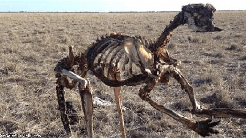 في محاولة لتسليط الضوء على الجفاف القاسي الذي يضرب البلاد، نشر مزارع في أستراليا صورة لهيكل عظمي لحيوان الكنغر يقف منتصبا.