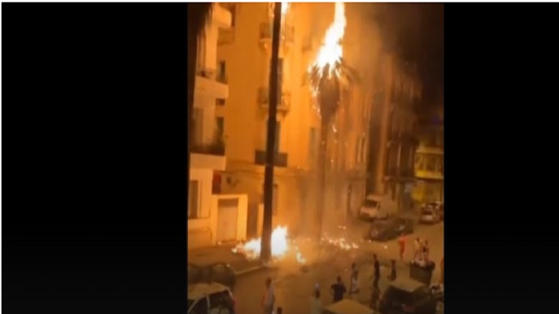 نشب اليوم الاحد 27 جوان 2021 حريق بنخلتين في نهج مصر بلافايات بالعاصمة مما أثار حالة من الهلع في صفوف المارة والمتساكنين.