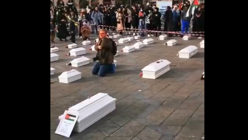 مواطن دانماركي في كوبنهاكن فاجأ الناس بإحضار 67 تابوتا و وضعها أمام البرلمان بأسماء الشهداء الصغار ، ليِشعر الشعب والسياسيين بهول قتـل الصهاينة لهذا العدد من الأطفال الفلسـطيـنيين .