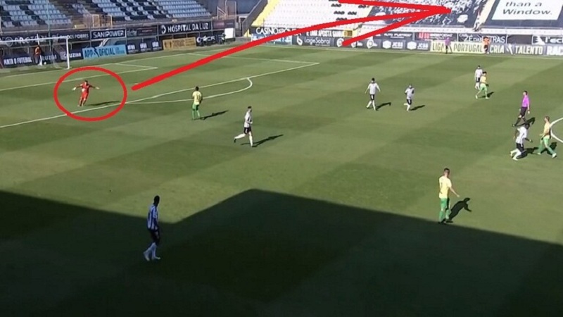 ? Вратарь из второго португальского дивизиона так сильно выбил мяч, что... просто забил через все поле!
