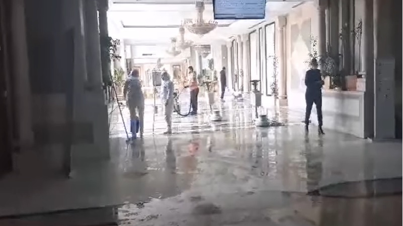 وكان في استقبال رئيس الدولة والوفد المرافق له رئيس المجلس الرئاسي الليبي السيد محمد المنفي ونائباه عبد الله اللافي وموسى الكوني
