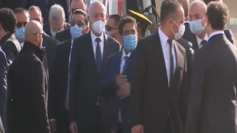 وصل رئيس الجمهورية قيس سعيد، صباح اليوم الأربعاء 17 مارس 2021، الى مطار معيتيقة الدولي بطرابلس حيث أقيمت له مراسم استقبال رسمية.
