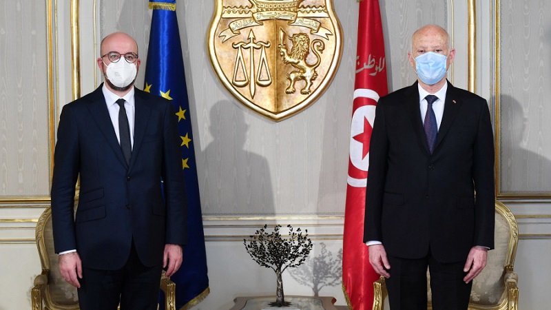 استقبل رئيس الجمهورية قيس سعيّد، صباح يوم الاثنين 5 أفريل 2021 بقصر قرطاج، السيّد "شارل ميشال"، رئيس المجلس الأوروبي.