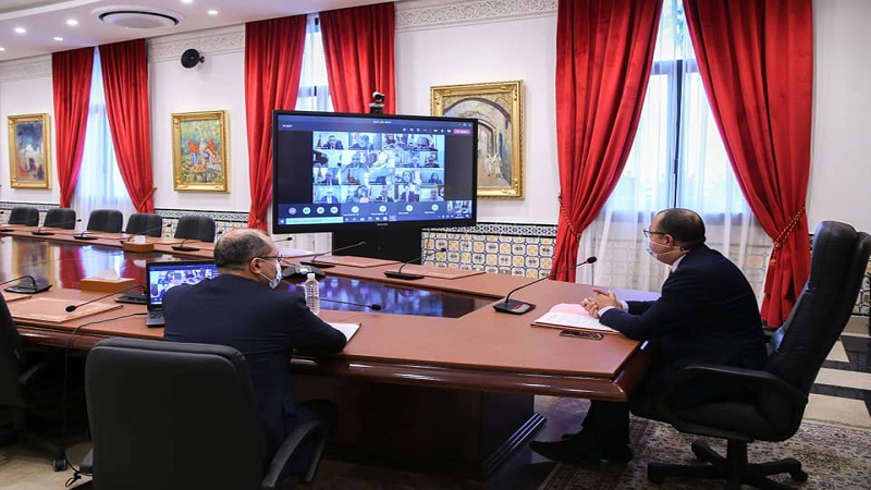 أشرف رئيس الحكومة هشام مشيشي، صباح اليوم الاثنين 15 فيفري 2021 بقصر الحكومة بالقصبة، على اجتماع مجلس الوزراء عبر تقنية التواصل