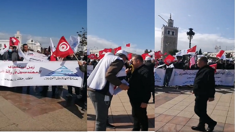 أنصار فرع اتحاد علماء المسلمين بتونس يحاولون الدخول للمقر.. والامن يتدخل (فيديو)