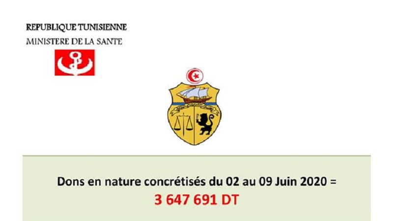 اعلنت لجنة الهبات والتبرعات بوزارة الصحة أن حجم التبرعات ارتفع خلال الأسبوع الممتد من 2 إلى 9 جوان 2020 الى 3647691 دينار