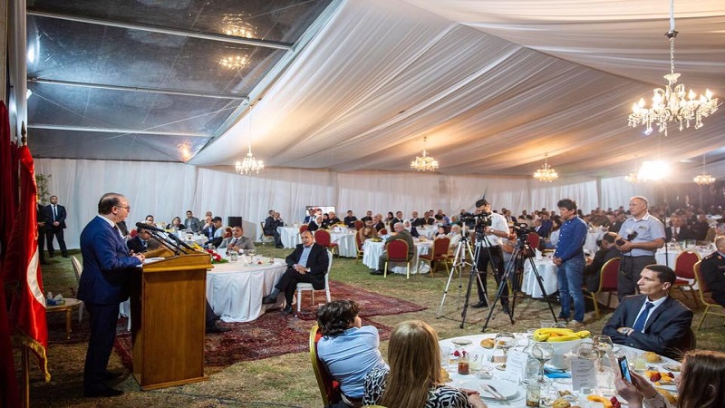 أشرف رئيس الحكومة إلياس الفخفاخ الثلاثاء 19 ماي 2020 بمقر الادارة العامة للحرس الوطني بالعوينة على مأدبة إفطار تكريما لعائلات ش