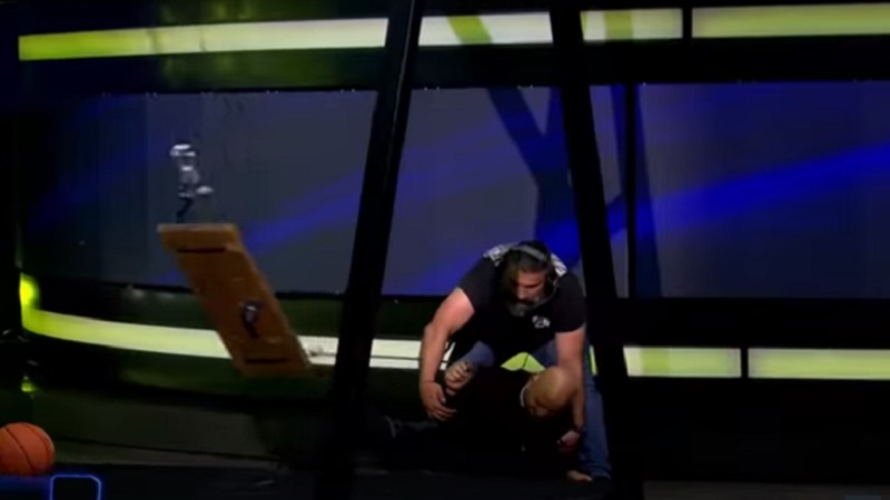 وأثارت حادثة السقوط هلعا في صفوف المشاركين وضيوف الحلقة لكن طاقم البرنامج سارع في تقديم الإسعافات الأولية للسقا الذي عاد واستكمل الحلقة متجاوزا ألمه.