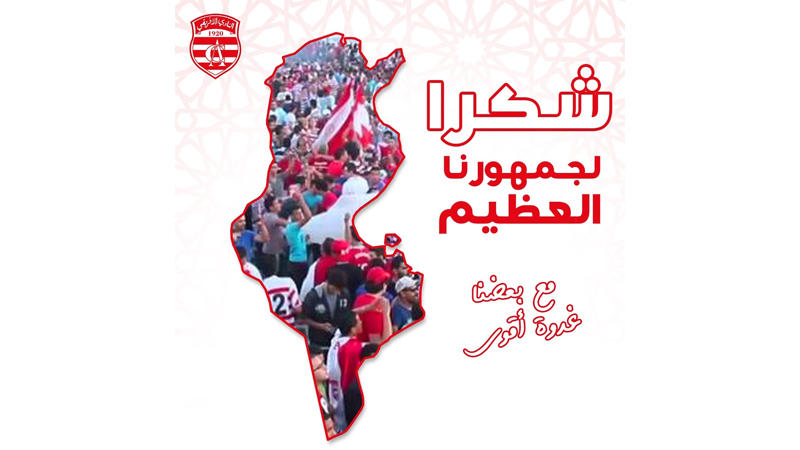 وقال نادي باب الجديد، عبر صفحته الرسمية على "فيسبوك": "تتقدم الهيئة المديرة للنادي الإفريقي بجزيل الشكر والامتنان .. لجماهيرنا الغفيرة على تشجيعهم المستمر واللا مشروط طيلة هذا الموسم .. وخاصة لجماهيرنا بجربة والجنوب .. على حفاوة الاستقبال والتشجيع والمؤازرة في مباراة نهائي الكأس".